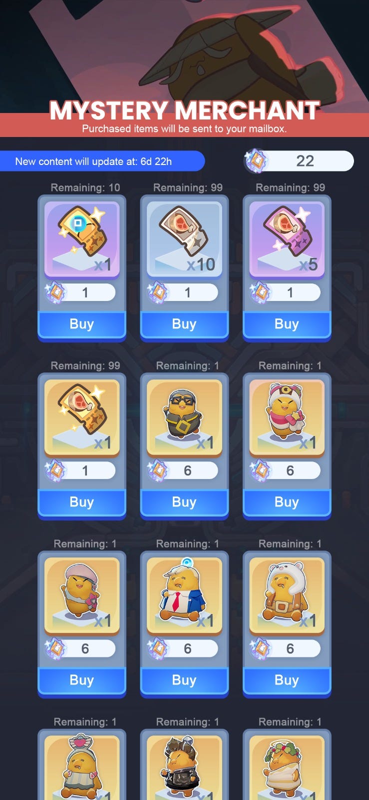 神秘商人騎著蓬萊星系的傳說白龍馬抵達了!您可以使用靈力碎片兌換神話物品,以及嘟嘟與布嘟!為慶祝神秘商人的到來,初始價格將大幅折扣,快挑選您心儀的物品,以滿滿的儀式感迎接農曆新年吧!物品數量有限,請務必盡快收集碎片,確保您獲得您的農曆新年護身符。